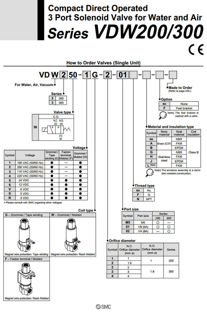 VDW250-1G,VDW350-1G,VDW250-5F,VDW250-6F,VDW250-1W,VDW350-5F,VDW350-6F,VDW350-1W,SMC直動(dòng)式3通電磁閥