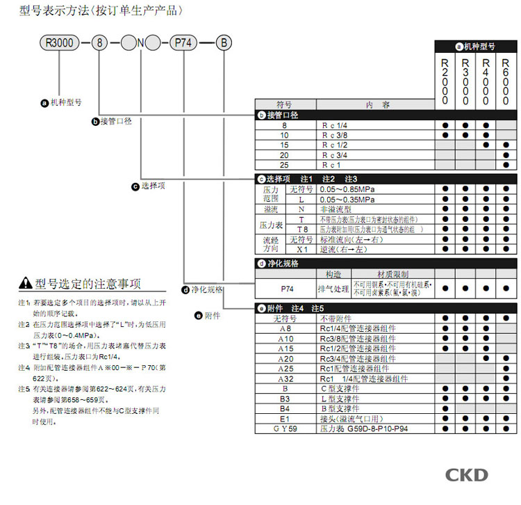 R2000-8,R2000-10,R3000-8,R3000-10,R4000-8,R4000-10,R4000-15,R6000-20,R6000-25,CKD減壓閥