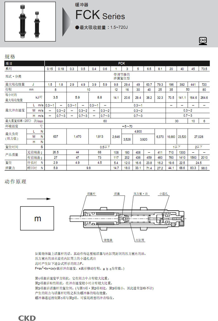 詳細信息 FCK-L-0.15,FCK-L-0.3,FCK-L-0.4,FCK-L-1,FCK-L-3,FCK-L-5,FCK-L-6.5,FCK-L-8.1,CKD緩沖器