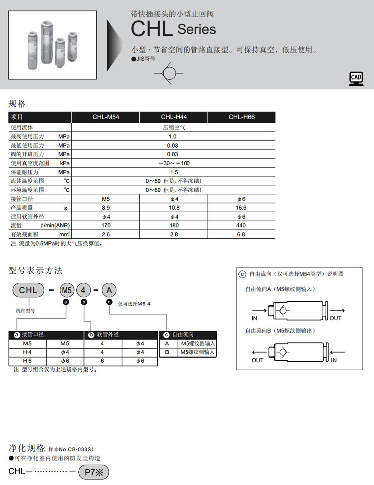 詳細(xì)信息 CHL-M54,CHL-H44,CHL-H66,CKD止回閥