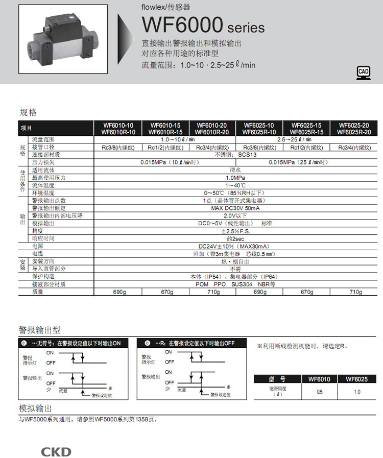 WF6010-10,WF6010-15,WF6010-20,WF6025-10,WF6025-15,WF6025-20,CKD傳感器