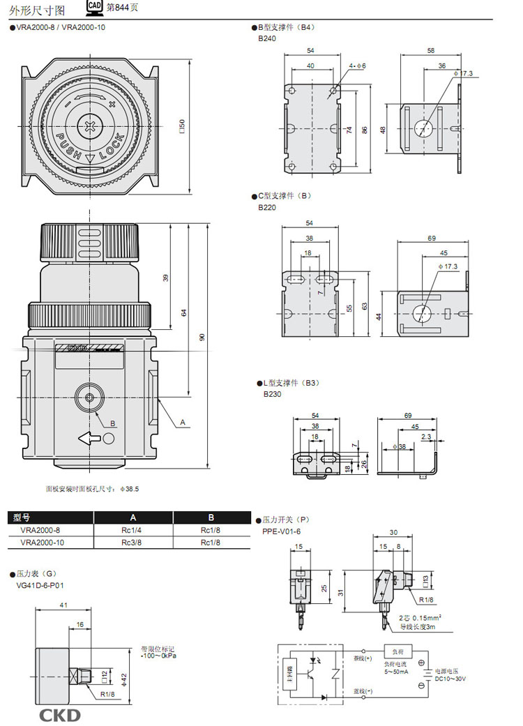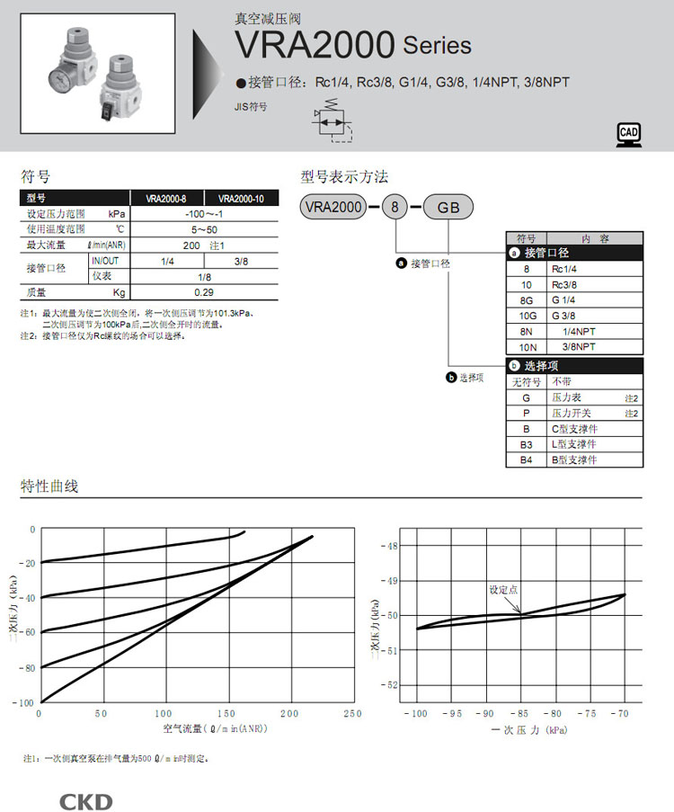 詳細信息 VRA2000-8,VRA2000-10,VRA2000-8G,VRA2000-10G,VRA2000-8N,VRA2000-10N,CKD真空減壓閥