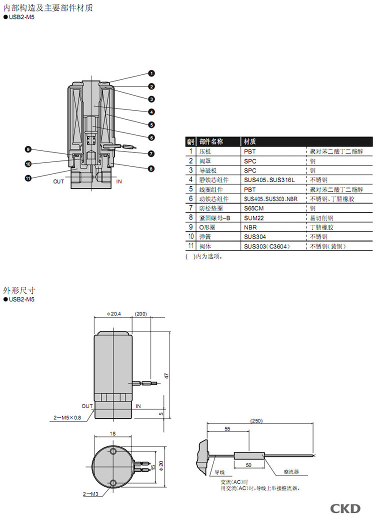 詳細(xì)信息 USB2-M5-1,USB2-M5-2,CKD直動(dòng)式2通電磁閥