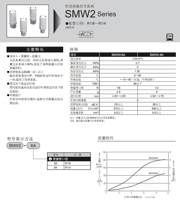 SMW2-6A,SMW2-8A,CKD節(jié)流閥