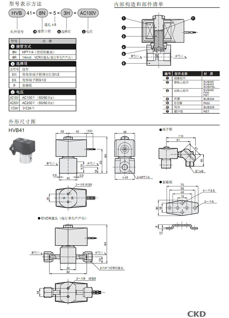 詳細(xì)信息 HVB41-8N-5,HVB41-8R-5,CKD高真空用電磁閥
