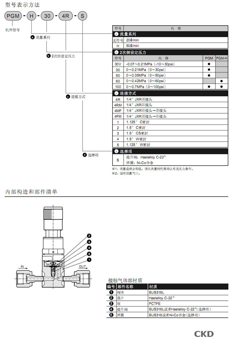 PGM-30V-4R,PGM-30-4R,PGM-50-4R,PGM-100-4R,PGM-H-60-4R,PGM-H-100-4R,PGM-30V-4RM,CKD減壓閥