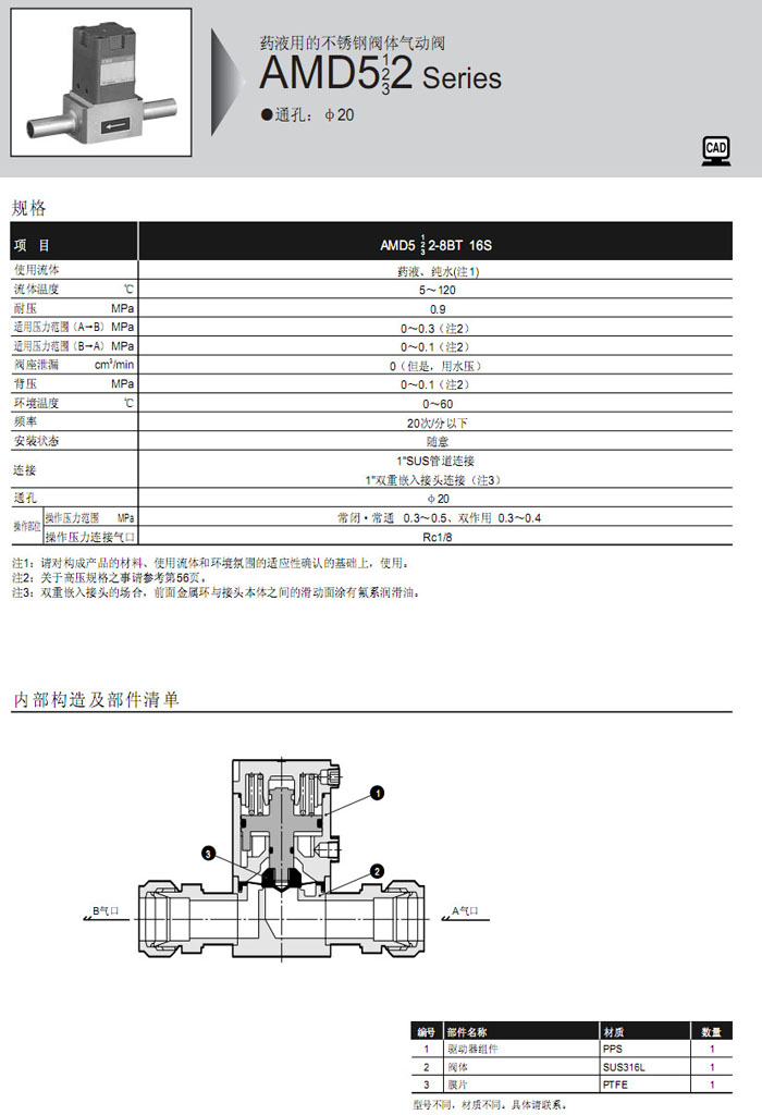 詳細(xì)信息 AMD512-8BT,AMD512-16S,AMD522-8BT,AMD522-16S,AMD532-8BT,AMD532-16S,CKD藥液用氣動(dòng)閥