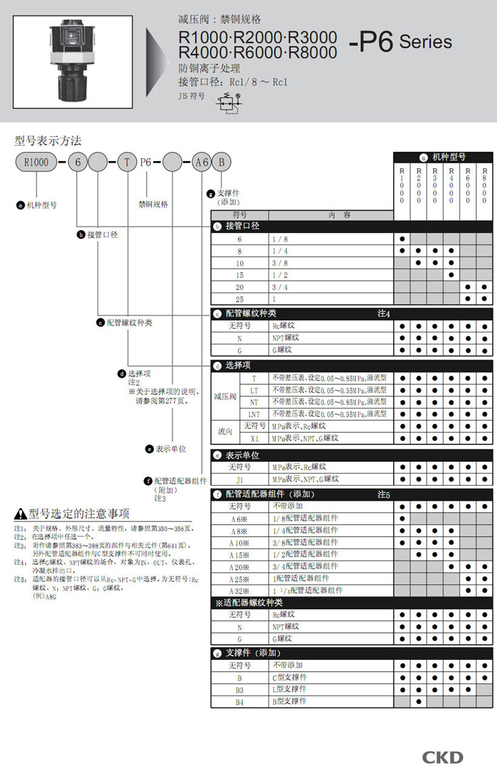 R1000-6,R1000-8,R3000-8,R3000-10,R4000-8,R4000-10,R4000-15,R6000-20,R6000-25,R8000-20,R8000-25,CKD減壓