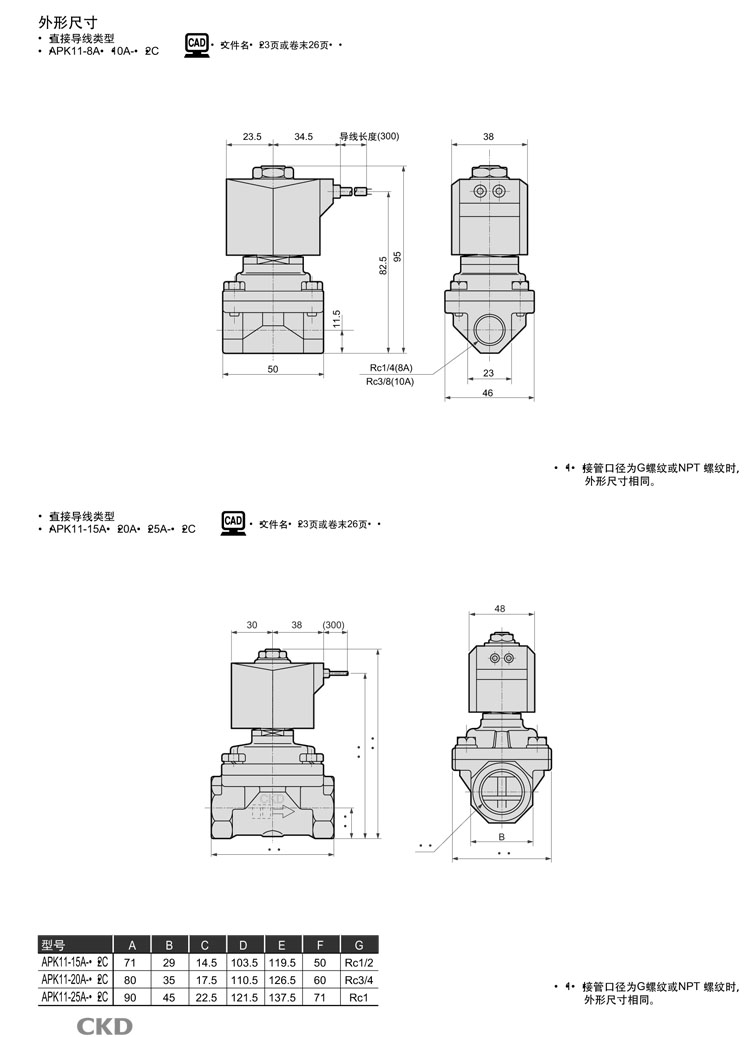 APK11-8A,APK11-10A,APK11-15A,APK11-20A,APK11-25A,CKD先導(dǎo)式2通電磁閥