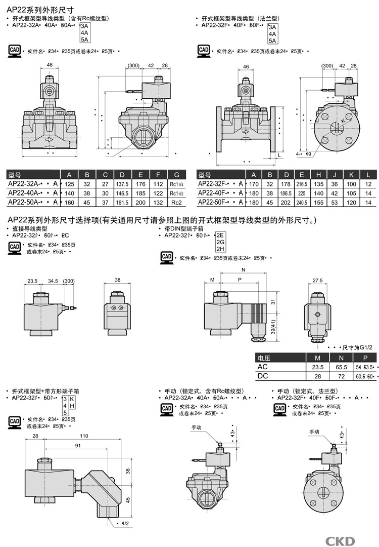 AP22-50F-N4A,AP22-50F-N4K,AP22-50F-N4H,AP22-50F-N5A,AP22-50F-N5K,AP22-50F-N5H,CKD先導(dǎo)式2通電磁閥