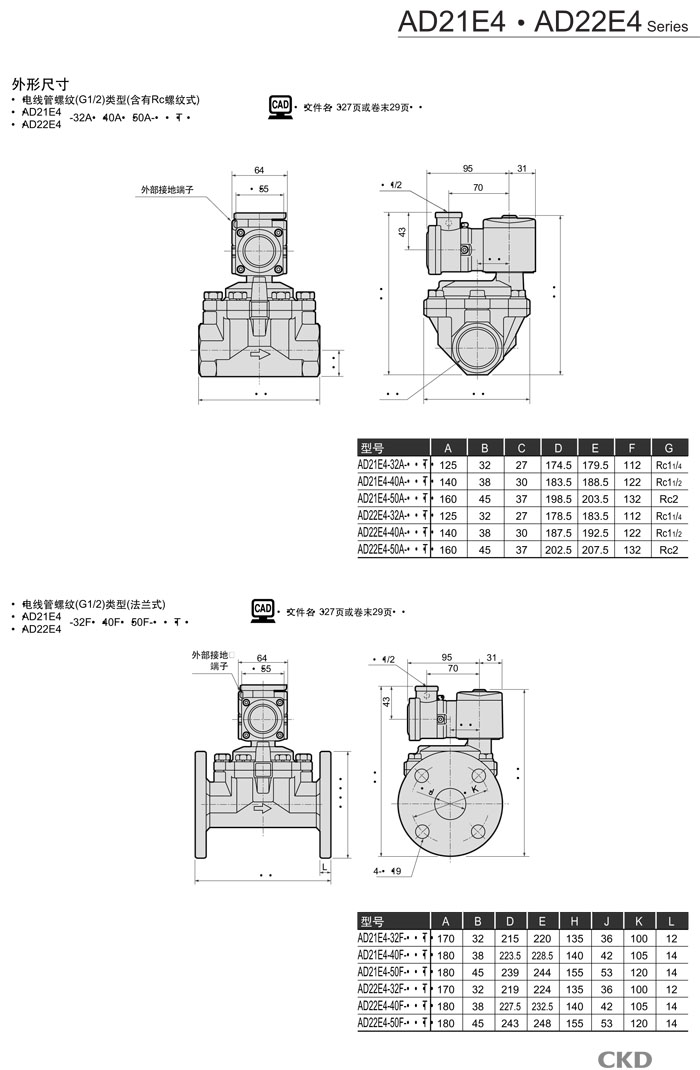 AD22E4-32A,AD22E4-32F,AD22E4-40A,AD22E4-40F,AD22E4-50A,AD22E4-50F,CKD先導(dǎo)式2通電磁閥