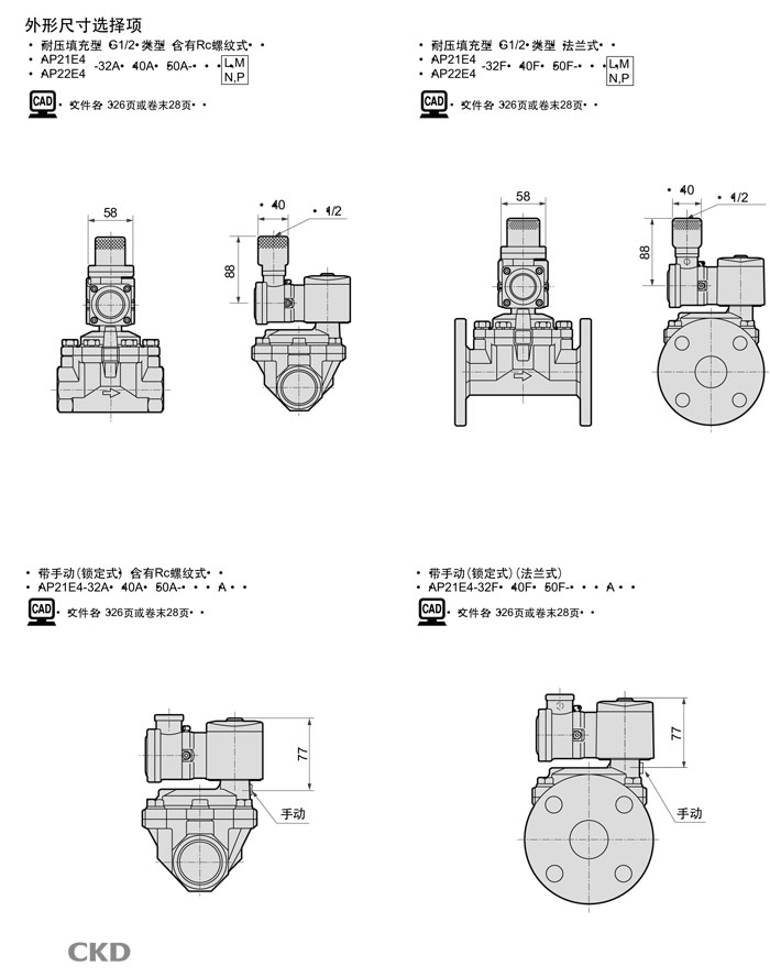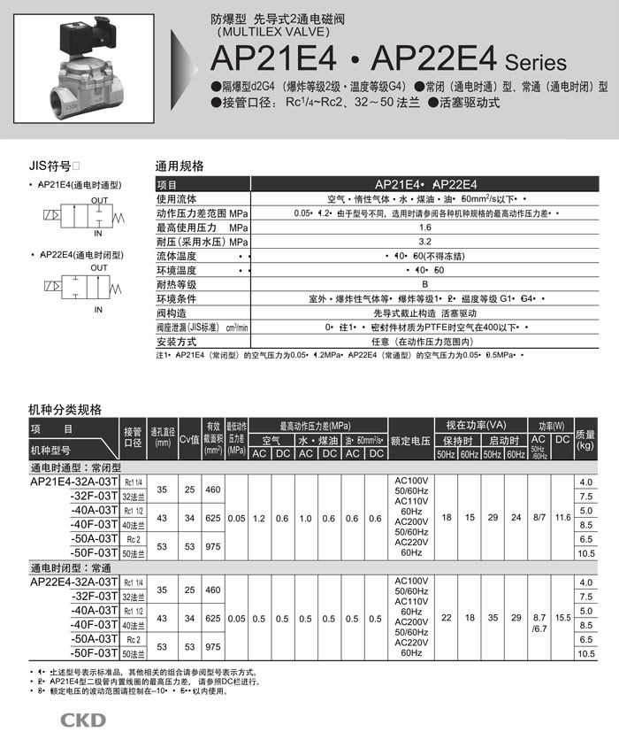 AP22E4-40A-K3P,AP22E4-40A-K5T,AP22E4-40A-K5L,AP22E4-40A-K5M,AP22E4-40A-K5N,AP22E4-40A-K5P,CKD先導式2通電磁閥