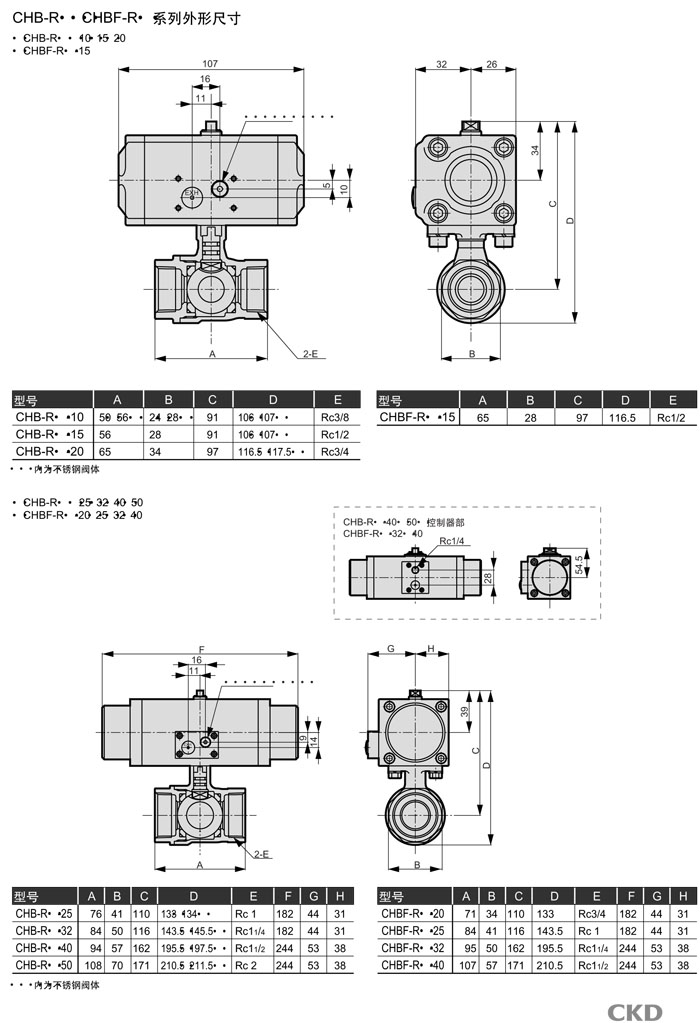 CHBF-R1-15-E,CHBF-R1-20-E,CHBF-R1-25-E,CHBF-R1-32-E,CHBF-R1-40-E,CKD氣動(dòng)式球閥2通閥