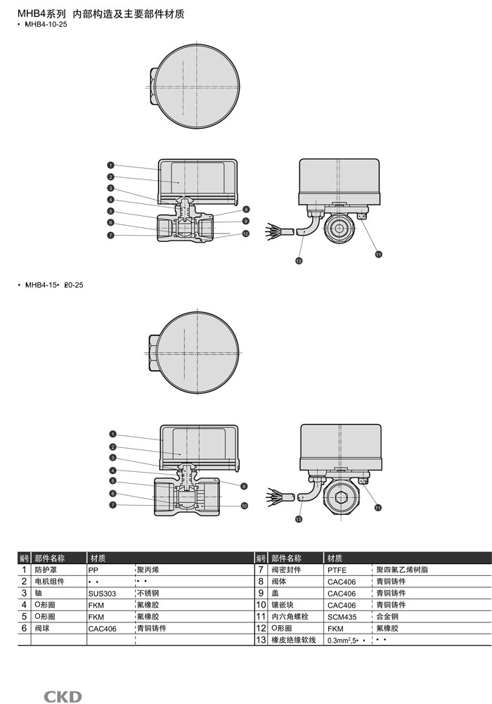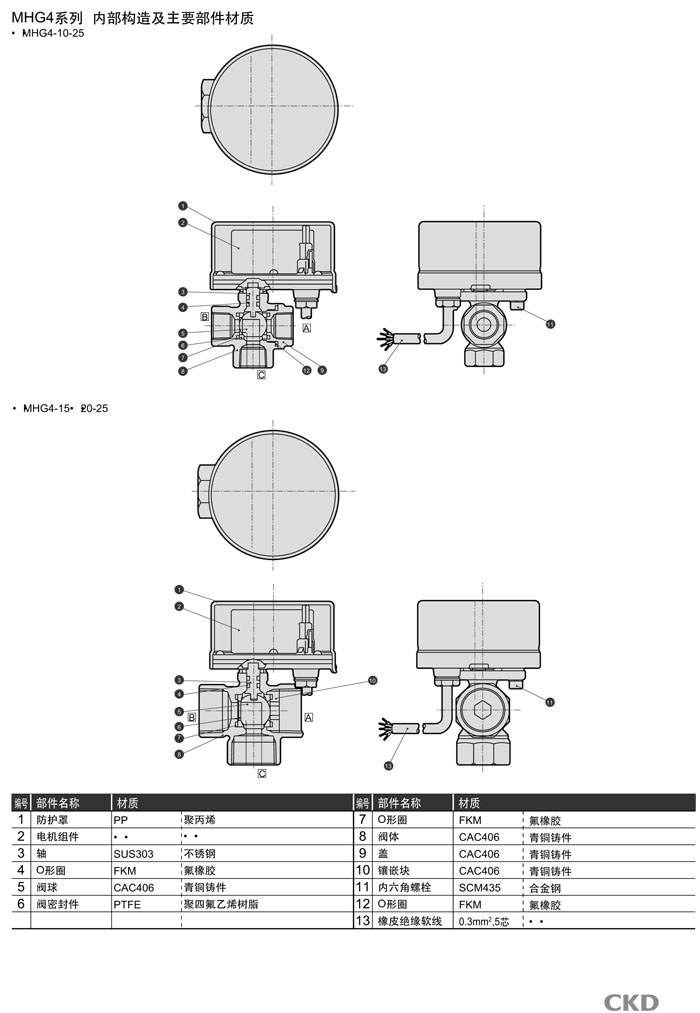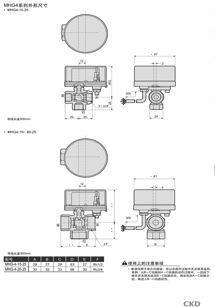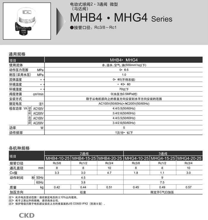 MHB4-10-25,MHB4-15-25,MHB4-20-25,MHG4-10-25,MHG4-15-25,MHG4-20-25,CKD電動(dòng)式球閥2·3通電磁閥