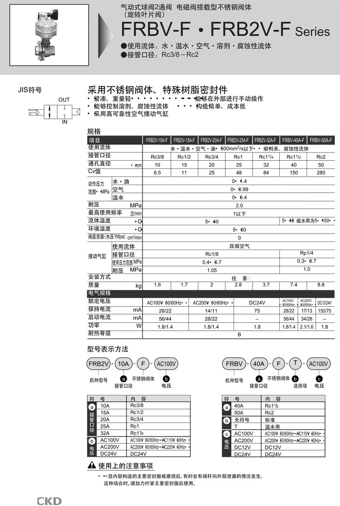 FRB2V-10A-F,FRB2V-15A-F,FRB2V-20A-F,FRB2V-25A-F,FRB2V-32A-F,FRBV-40A-F,FRBV-50A-F,CKD氣動式球閥2通閥