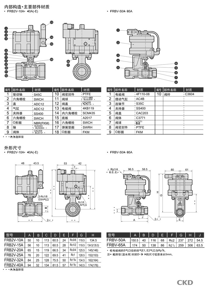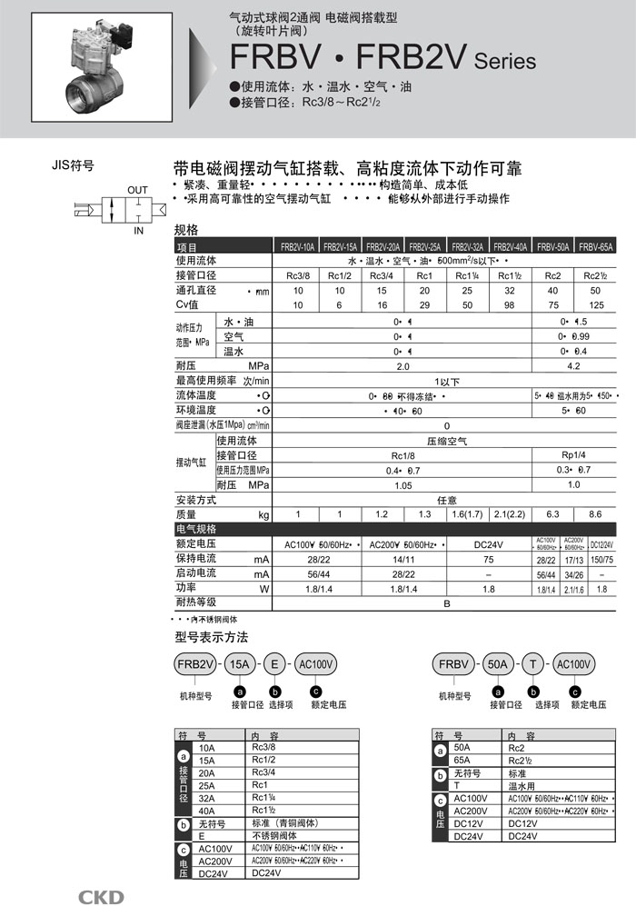 FRB2V-10A,FRB2V-15A,FRB2V-20A,FRB2V-25A,FRB2V-32A,FRB2V-40A,FRBV-50A,FRBV-65A,CKD氣動式球閥2通閥