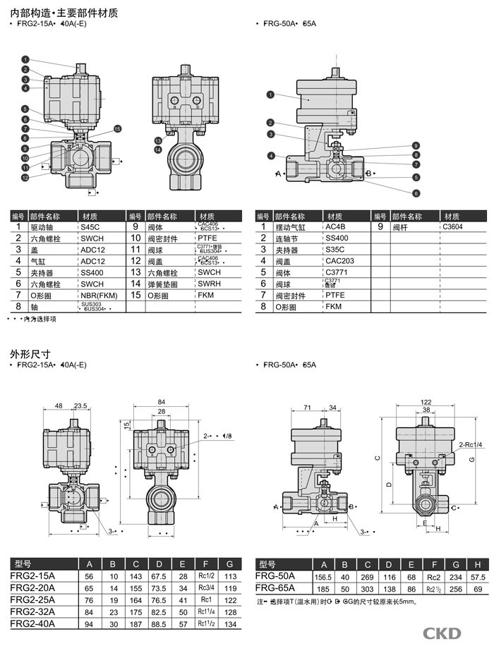FRG2-15A,FRG2-20A,FRG2-25A,FRG2-32A,FRG2-40A,FRG-50A,FRG-65A,CKD氣動式球閥3通閥
