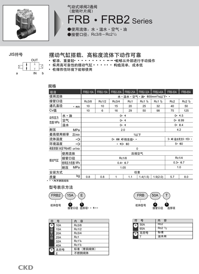 FRB2-10A,FRB2-15A,FRB2-20A,FRB2-25A,FRB2-32A,FRB2-40A,FRB-50A,FRB-65A,CKD氣動(dòng)式球閥2通閥