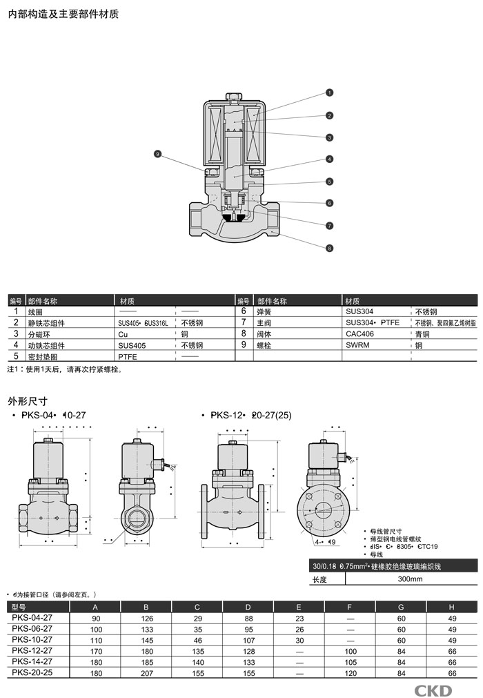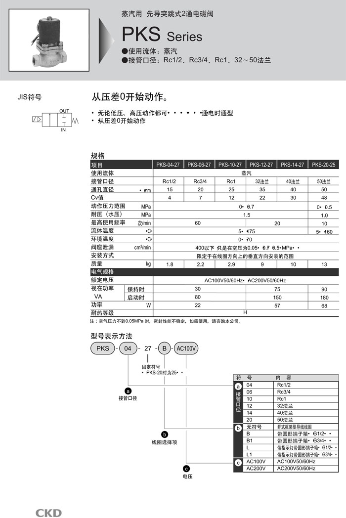 PKS-04-27,PKS-06-27,PKS-10-27,PKS-12-27,PKS-14-27,PKS-20-25,CKD先導(dǎo)式2通電磁閥