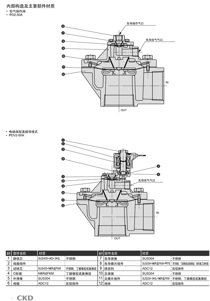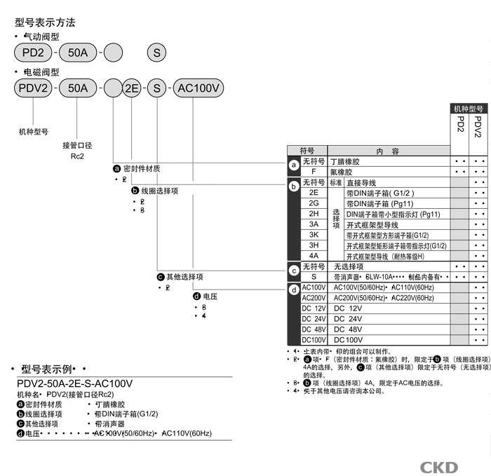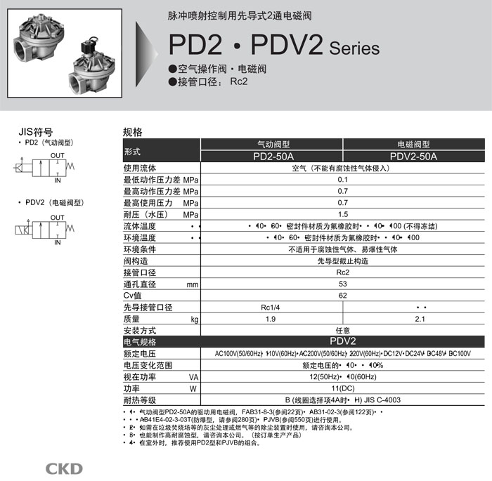 PD2-50A,PDV2-50A,PD2-50A-S,PDV2-50A-2E-S-AC100V,PDV2-50A-2E-AC100V,CKD先導式2通電磁閥