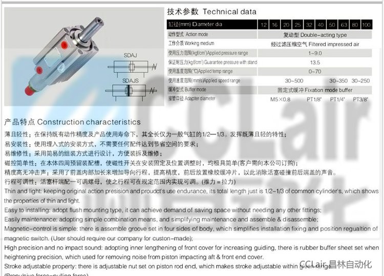 SDAJ32*95,SDAJ32*100,SDAJ40*20,SDAJ40*25,SDAJ40*30,SDAJ40*35,SDAJ40*40,行程可調(diào)超薄型氣缸