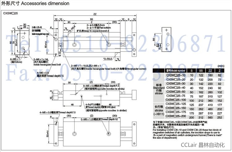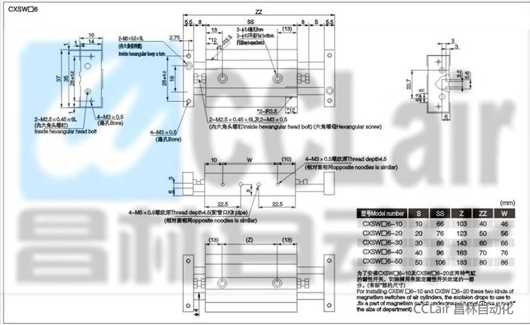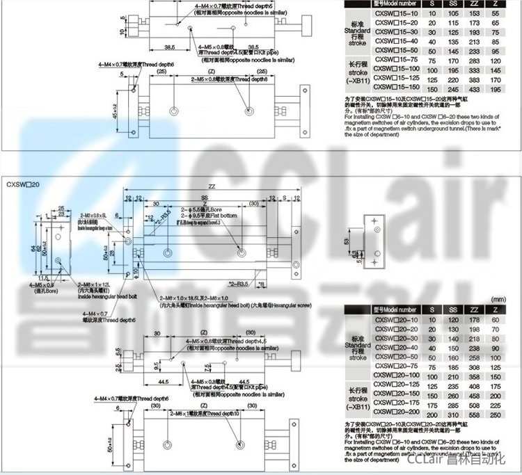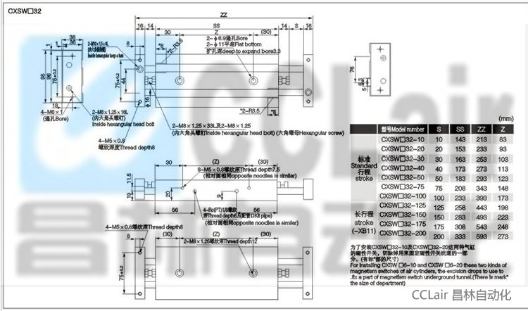CXSWM20-50,CXSWM20-75,CXSWM20-100,CXSWM25-10,CXSWM25-20,CXSWM25-30,通桿型氣缸
