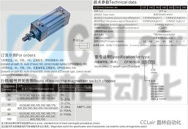 CP95SDB80-40,CP95SDB80-50,CP95SDB80-80,CP95SDB80-100,CP95SDB80-125,CP95SDB80-150,,歐洲標準正方形缸體氣缸