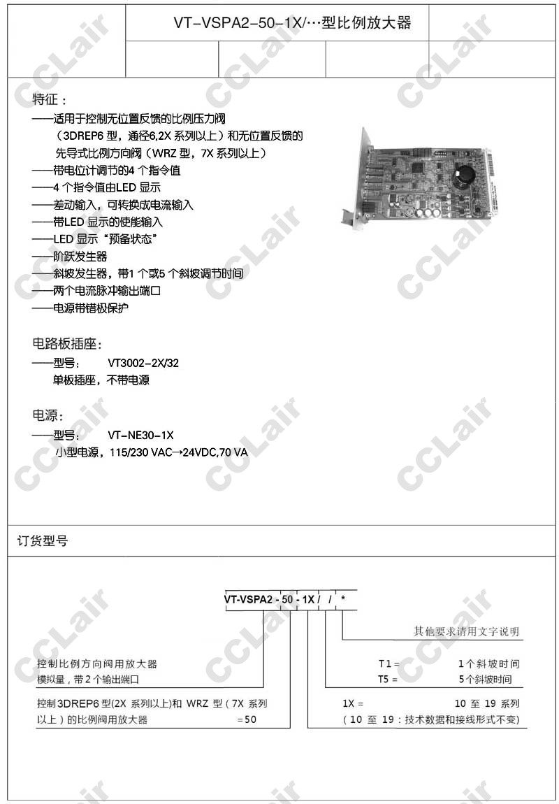 詳細信息 VT-VSPA2-50-1X/T1,VT-VSPA2-50-1X/T5,huade比例放大器