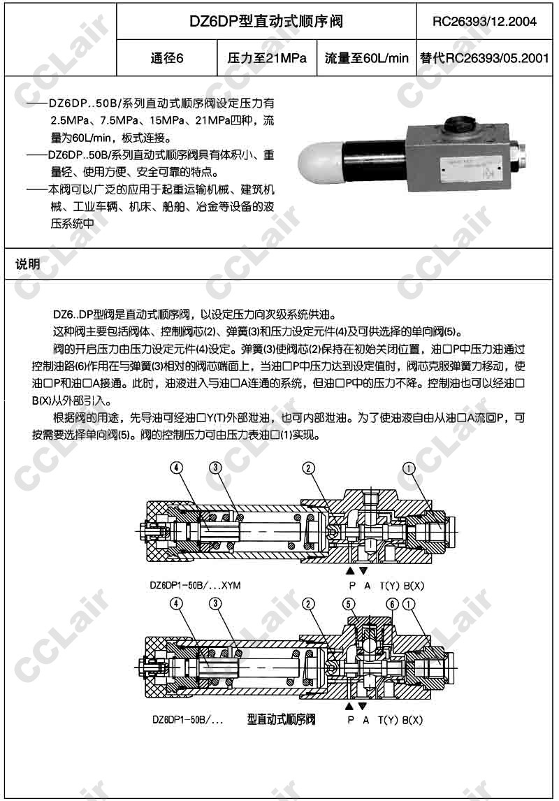 DZ6DP1-50,DZ6DP2-50,DZ6DP3-50,DZ6DP7-50,huade直動式順序閥