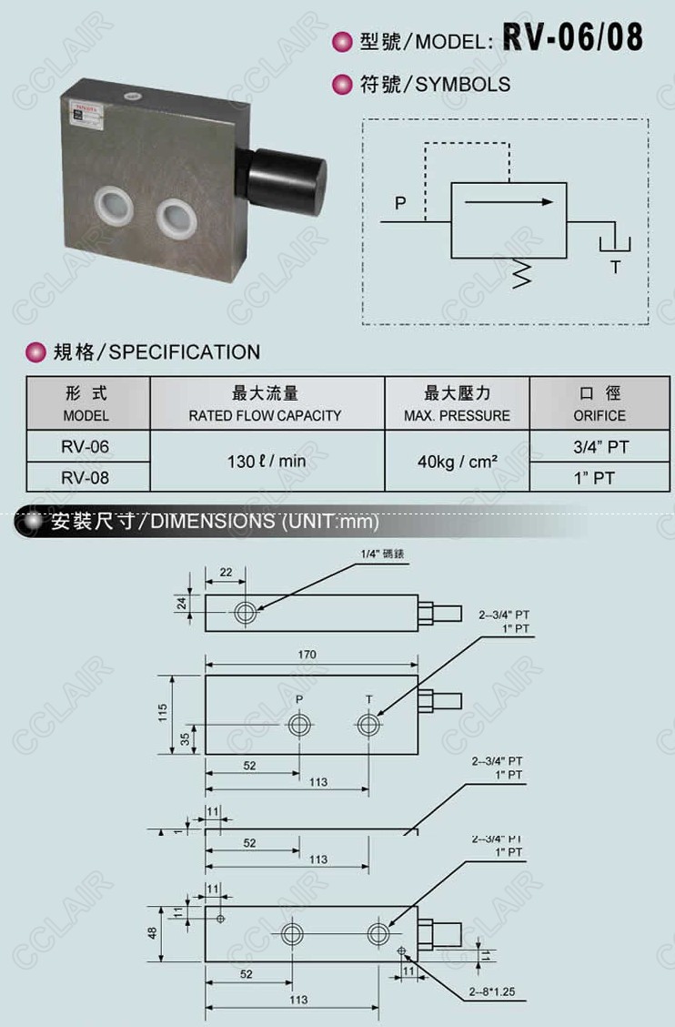 詳細(xì)信息 RV-06,RV-08,直動(dòng)式溢流閥FONGTIEN