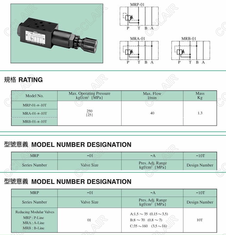 MRP-01-A-10T,MRA-01-B-10T,MRB-01-B-10T,MRP-01-C,疊加式減壓閥YUKEN
