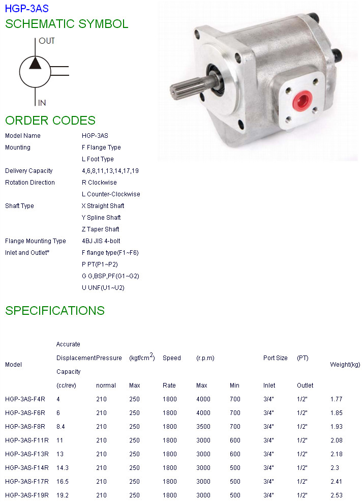 詳細信息 HGP-3AS-F4R,HGP-3AS-F6R,HGP-3AS-F8R,HGP-3AS-F11R,HGP-3AS-F13R,HYDROMAX齒輪泵