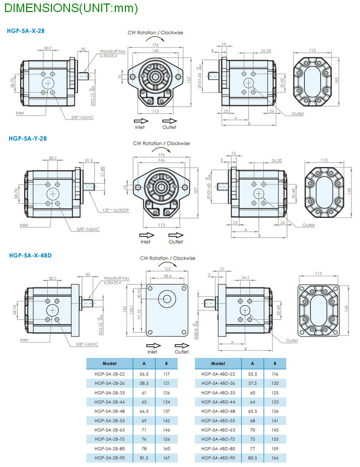 詳細(xì)信息 HGP-5A-F22R,HGP-5A-F26R,HGP-5A-F33R,HGP-5A-F44R,HGP-5A-F48R,HYDROMAX齒輪泵