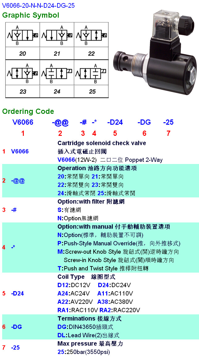 V6066-21,V6066-22,V6066-23,V6066-24,V6066-25,V6066-20-N-N-D24-DG-25,HYDROMAX插入式電磁止回閥
