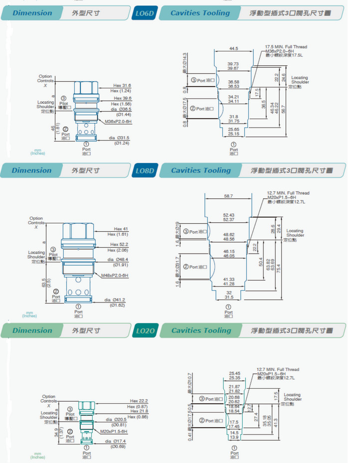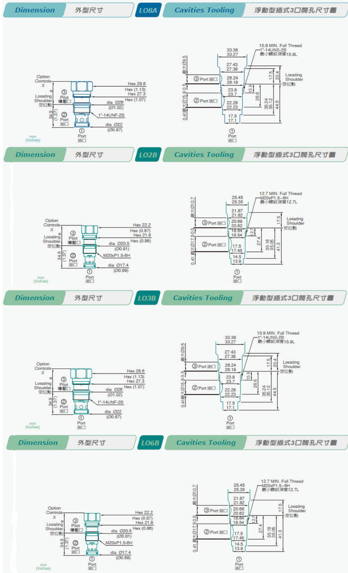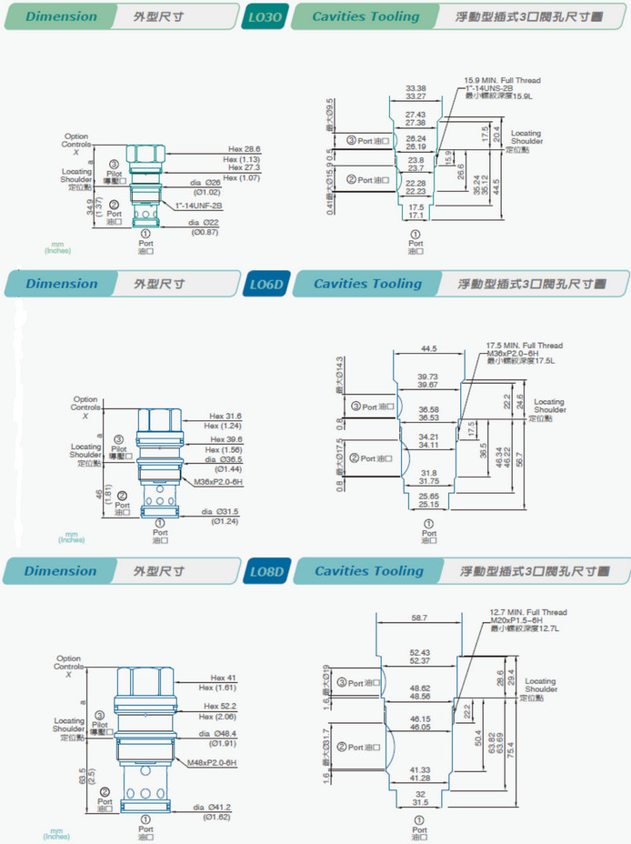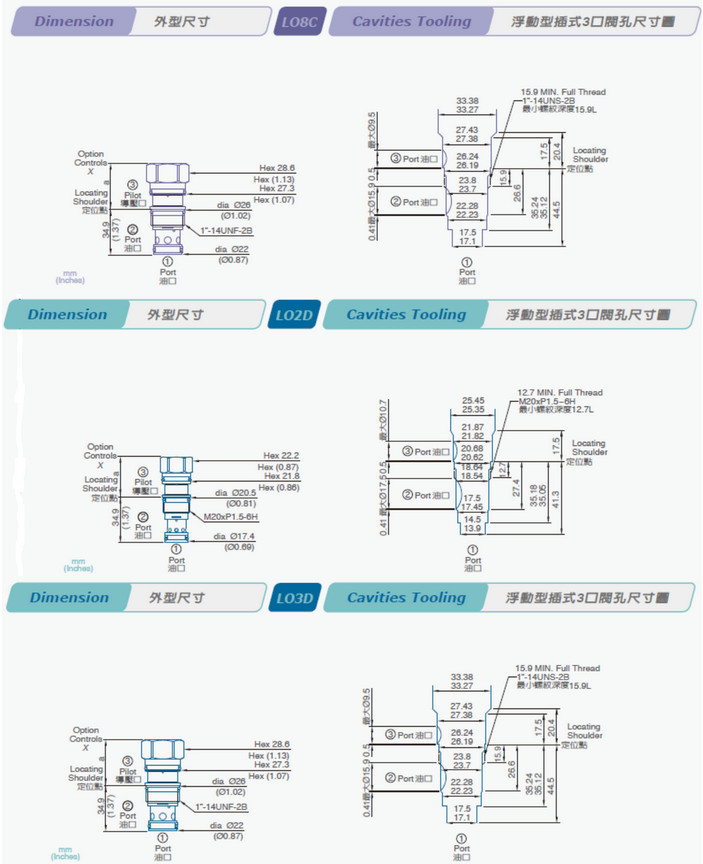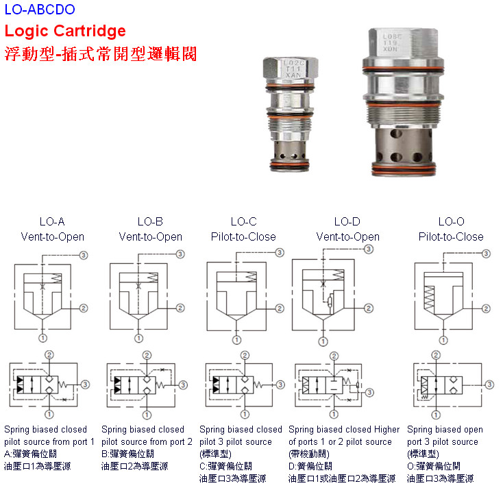 LO2A,LO2B,LO2C,LO3A,LO3B,LO3C,LO3D,LO3O,LO6A,LO6B,LO6C,LO6D,LO6O,LO8A,LO8B,LO8C,HYDROMAX插式常開型邏輯閥