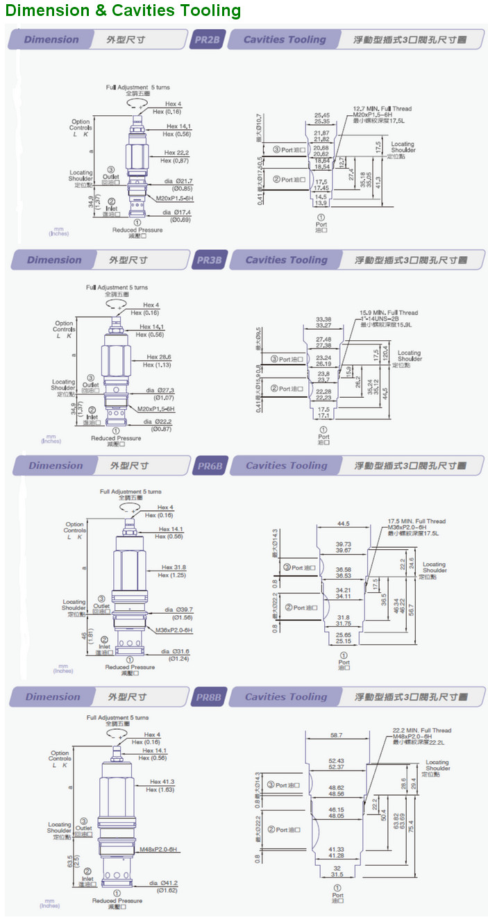 PR2B-T11A-LAN,PR3B-T2A-LAN,PR6B-T17A-LAN,PR8B-T19A-LAN,HYDROMAX插式減洩壓閥