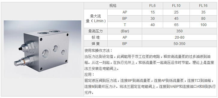 詳細(xì)信息 HYVABP FL6,HYVABP FL10,HYVABP FL16,法蘭式雙泵高低流量卸荷閥