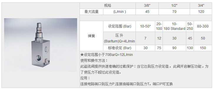 詳細(xì)信息 HYVMP 3/8",HYVMP 1/2",HYVMP 3/4",壓力溢流閥