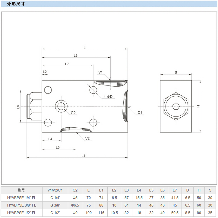 詳細(xì)信息 HYVBPSE 1/4" FL,HYVBPSE 3/8" FL,HYVBPSE 1/2" FL,單先導(dǎo)式單向閥