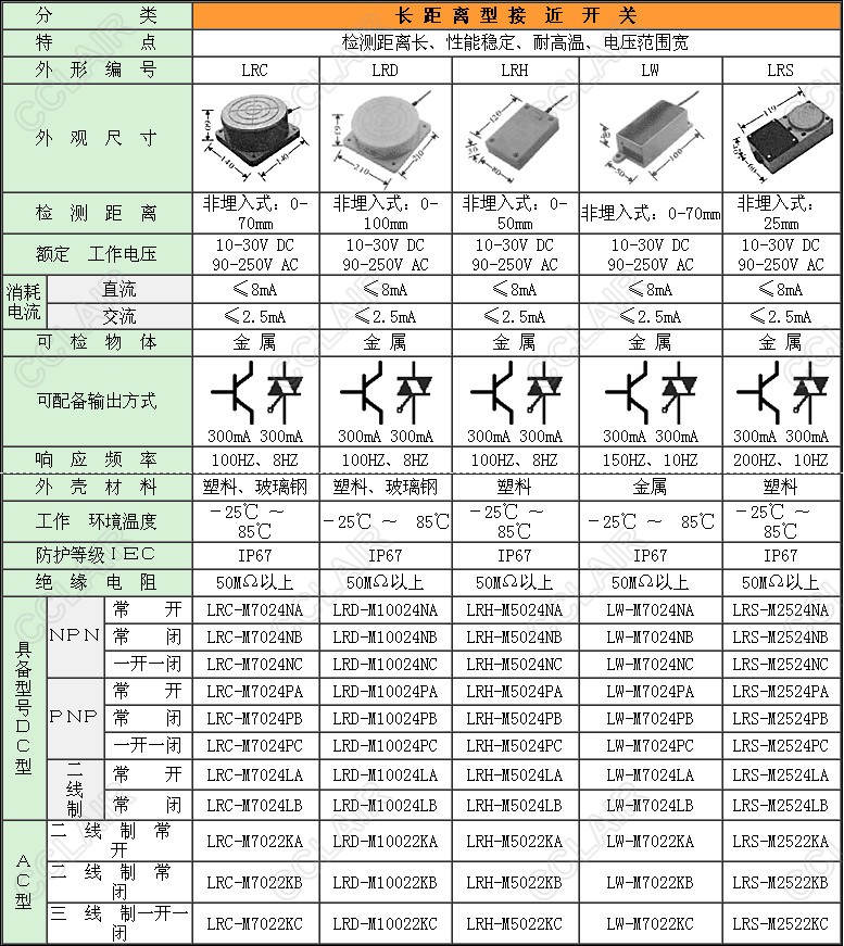LRC-M7024NA,LRD-M10024NA,LRH-M5024NA,LW-M7024NA,LRS-M2524NA,LRC-M7024NB,長(zhǎng)距離型接近開關(guān)