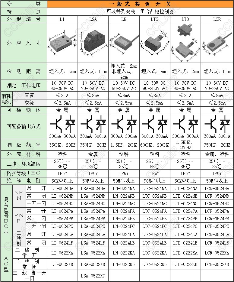 LI-0624NA,LSA-0524NA,LN-0224NA,LTC-0524NA,LTD-0224NA,LCR-0524NA,LI-0624NB,LSA-0524NB,一般式接近開關(guān)