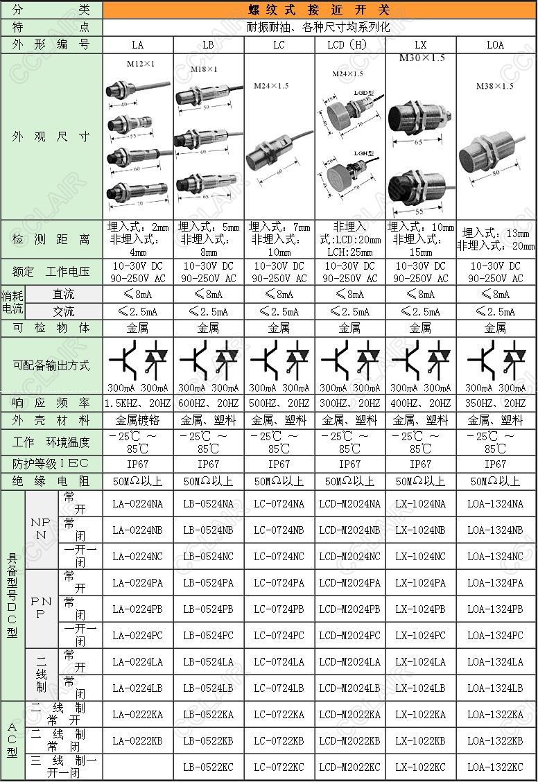 LA-0224NA,LB-0524NA,LC-0724NA,LCD-M2024NA,LX-1024NA,LOA-1324NA,LA-0224NB,LB-0524NB,螺紋式接近開關(guān)