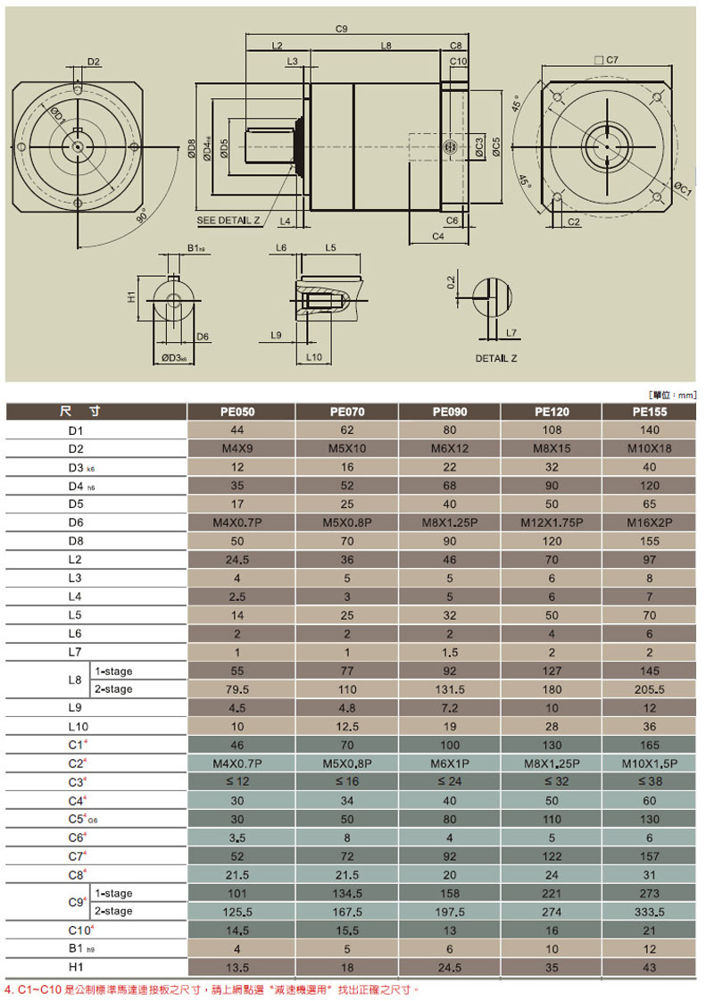 PE050-03,PE070-04,PE090-05,PE120-07,PE155-010,伺服專用減速機