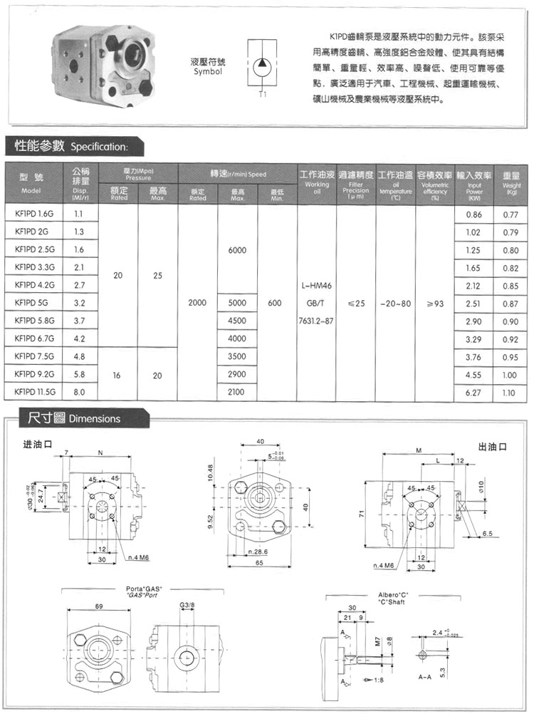 詳細(xì)信息 KF1PD1.6G,KF1PD2G,KF1PD2.5G,KF1PD3.3G,KF1PD4.2G,KF1PD5G,KF1PD5.8G,高壓齒輪油泵