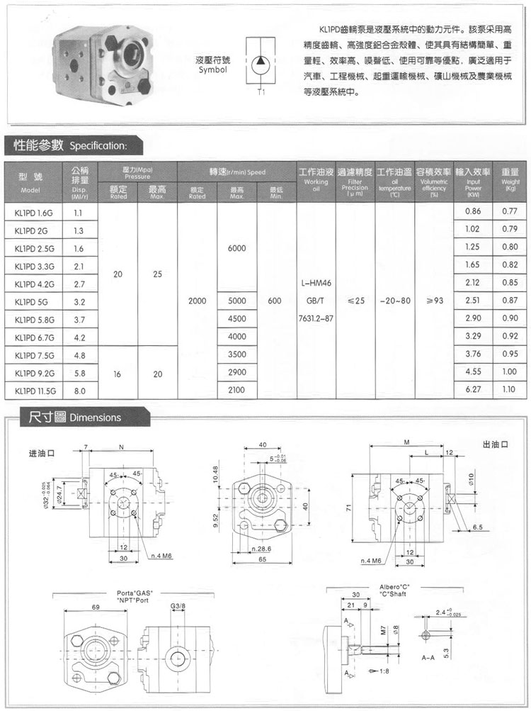 詳細(xì)信息 KL1PD1.6G,KL1PD2G,KL1PD2.5G,KL1PD3.3G,KL1PD4.2G,KL1PD5G,KL1PD5.8G,高壓齒輪油泵