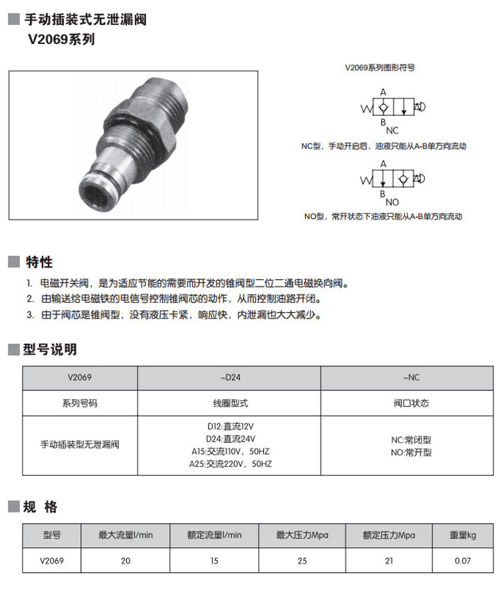型號(hào): V2069-D24-NC,V2069-D24-NO,V2069-D12-NC,V2069-D12-NO,V2069-A15-NC,V2069-A15-NO,手動(dòng)插裝式無(wú)泄漏閥