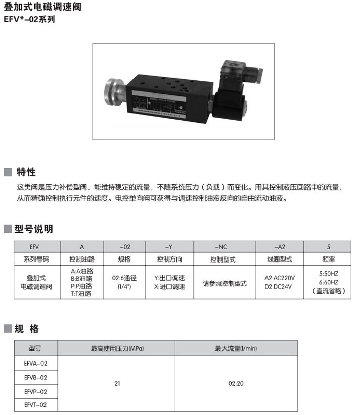 EFVA-02,EFVB-02,EFVP-02,EFVT-02,EFVA-02-X-NO,EFVP-02-X-NO,EFVB-02-X-NO,疊加式電磁調(diào)速閥