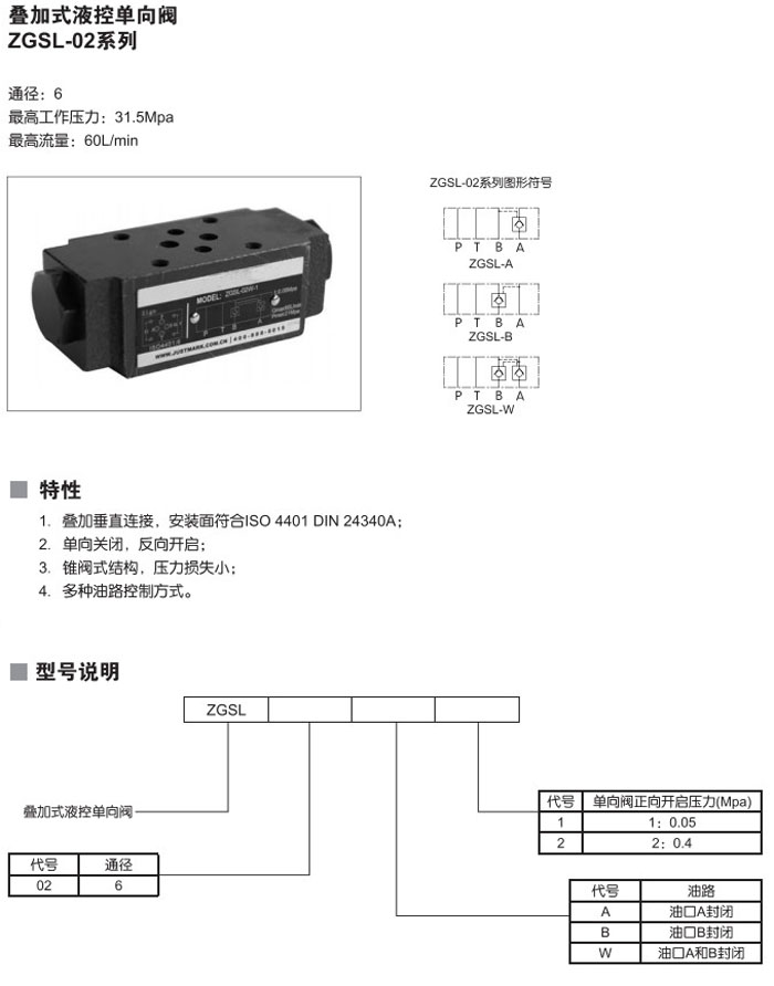 ZGSL-02A1,ZGSL-02A2,ZGSL-02B1,ZGSL-02B2,ZGSL-02W1,ZGSL-02W2,疊加式液控單向閥