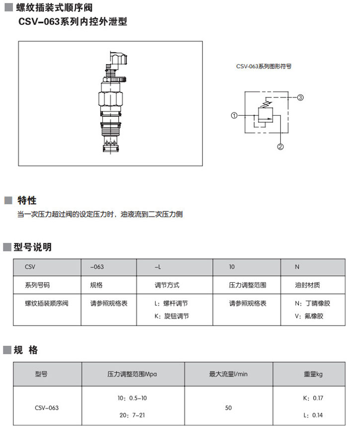 CSV-063-L10N,CSV-063-L20N,CSV-063-K10N,CSV-063-K20N,CSV-063-L10V,CSV-063-L20V,螺紋插裝式順序閥 詳細(xì)信息 CSV-063-L10N,CSV-063-L20N,CSV-063-K10N,CSV-063-K20N,CSV-063-L10V,CSV-063-L20V,螺紋插裝式順序閥