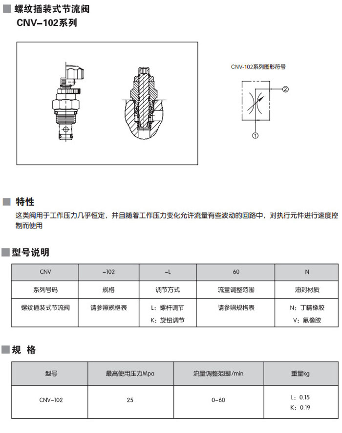 CNV-102-L60N,CNV-102-L60V,CNV-102-K60N,CNV-102-K60V,螺紋插裝式節(jié)流閥 詳細信息 CNV-102-L60N,CNV-102-L60V,CNV-102-K60N,CNV-102-K60V,螺紋插裝式節(jié)流閥